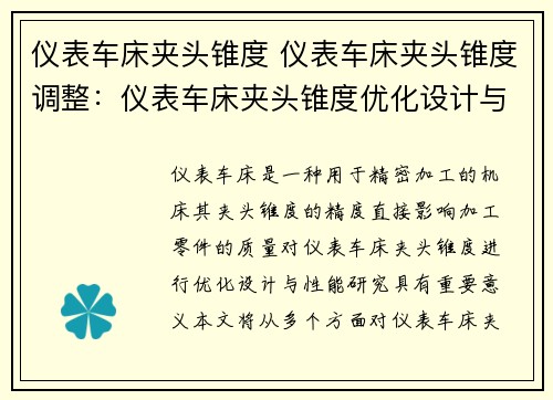 仪表车床夹头锥度 仪表车床夹头锥度调整:仪表车床夹头锥度优化设计与性能研究